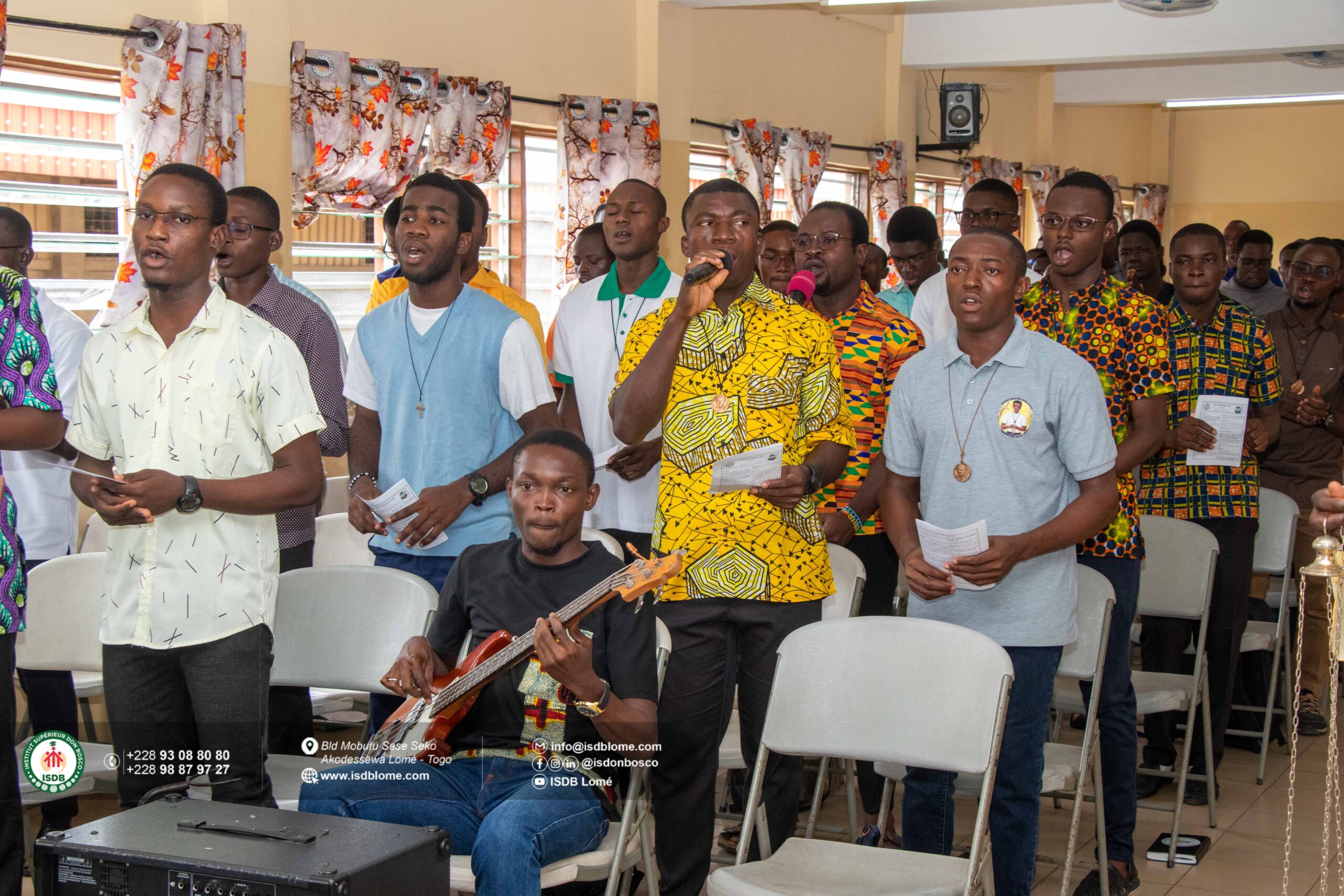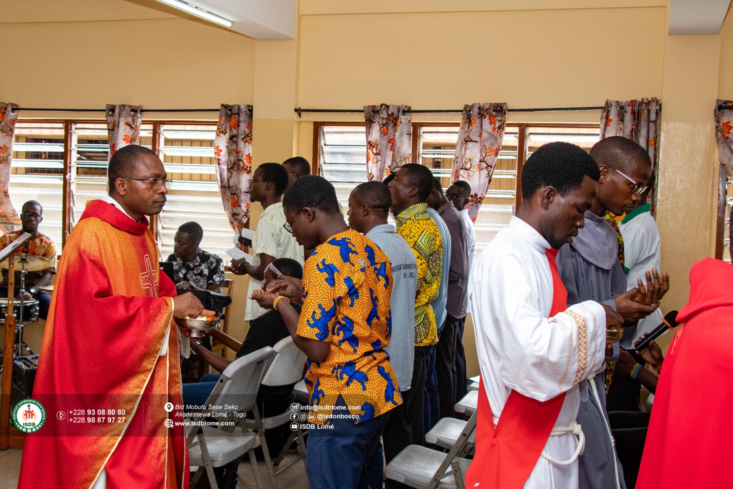 On Friday 26 September 2025, members of the academic community of the Institut Supérieur Don Bosco (ISDB) in Lomé gathered in the Salle Marie-Auxiliatrice to celebrate the new academic year Mass, a symbolic act marking the beginning of a new year under the guidance of the Holy Spirit. This liturgical event officially marks the start of a new academic year. The Eucharistic celebration was presided over by the ISDB Academic Director, Salesian priest Eklou Kpossi Didier, and concelebrated by a dozen priests. In his homily, Father Didier urged the entire academic community to be courageous and persevere in their work, and to focus on the essentials, the ideal way to achieve excellence, as stipulated in the institute’s motto: Usque ad verticem (All the way to the top). He wished them a “fruitful and joyful year, thanks to the grace of God and the involvement of all”. At the end of the mass, Father Bernard Gaba-Dovi, SDB, Representative of the Honorary Chancellor, solemnly declared the 2025-2026 academic year open, wishing the entire community a fruitful and happy start to the new academic year.