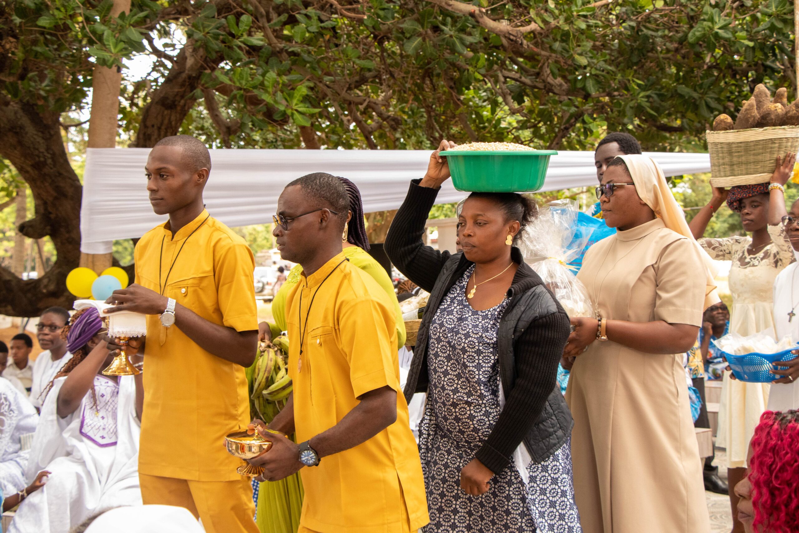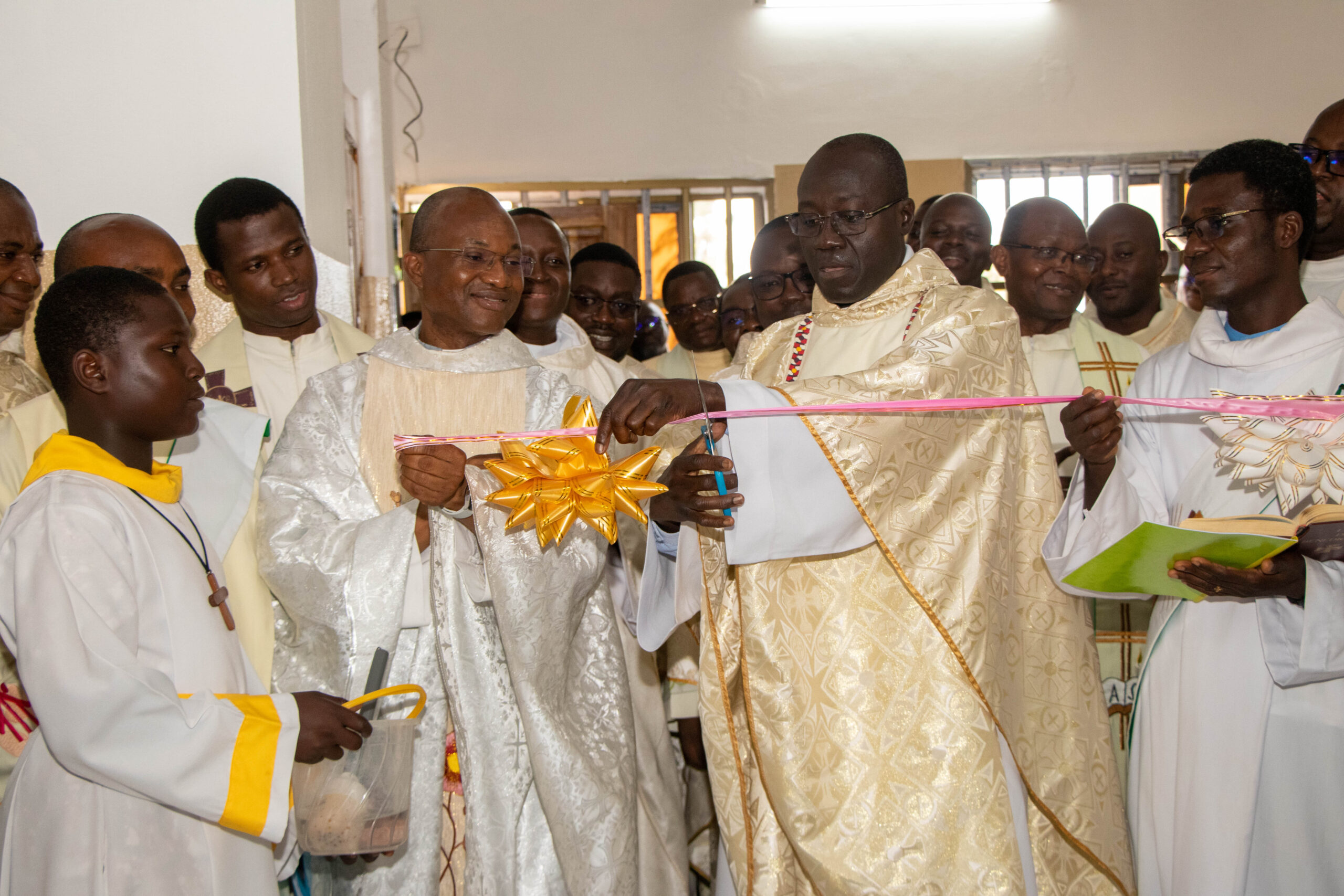 The Eucharistic celebration brought together a large crowd of faithful, several religious congregations, as well as more than 50 Salesian and other members of the Salesian family who had come for the occasion. The Mass was presided over by Rev. Fr. Denis SORO, Provincial of AOS, in the presence of Rev. Fr. Jésus Benoît BADJI, Provincial of AON. Ecclesial unity and communion were palpable throughout the celebration. This Mass also had a special significance: it marked the culmination of the celebration of the 30th anniversary of the Don Rinaldi Novitiate in Gbodjomé. For the community, this double grace – the religious profession of 16 new confreres and the commemoration of the 30th anniversary of the novitiate – was a source of great joy and profound thanksgiving.
